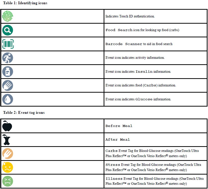| An overview of symbols and icons used in the OneTouch Reveal® Mobile App for Android™ devices. | |