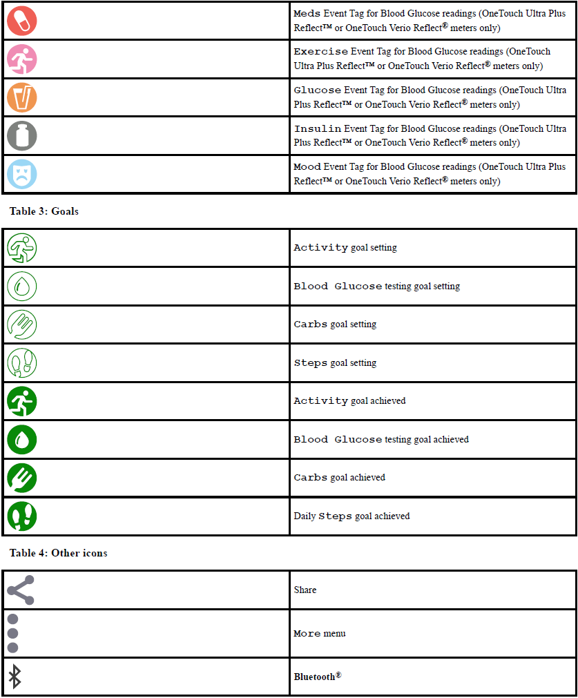 | OneTouch Reveal® Mobile App - Android™ – Symbols And Icons Used In The App | |