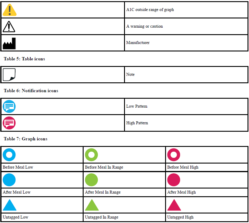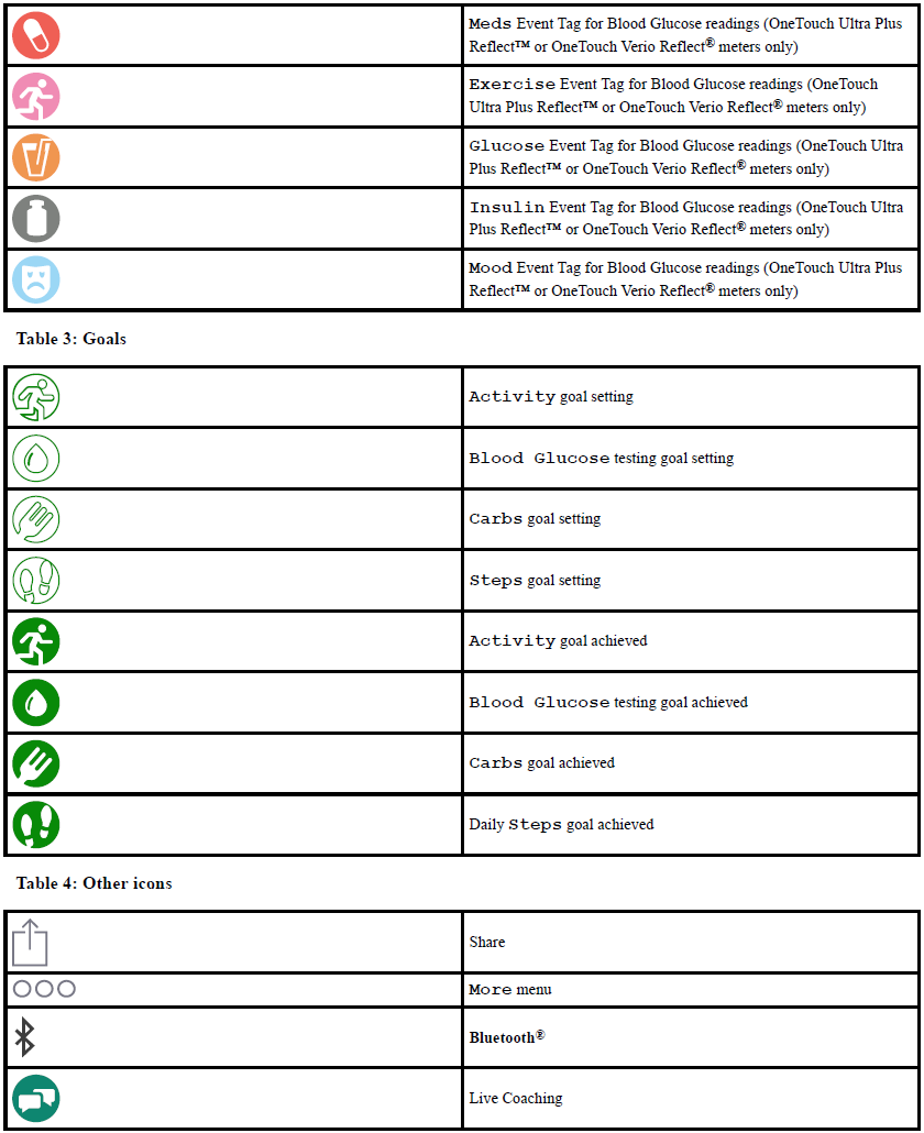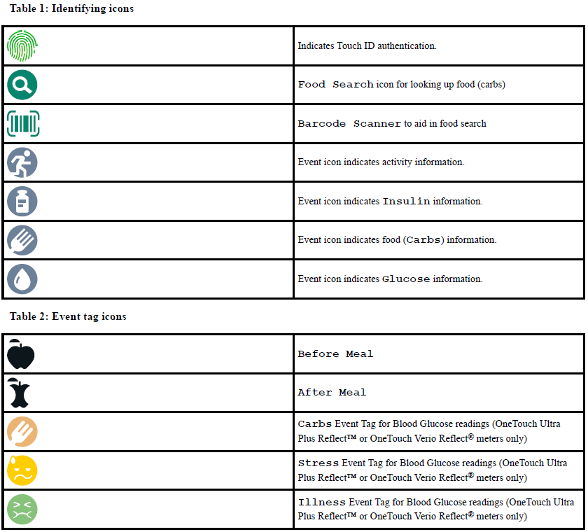 | OneTouch Reveal® Mobile App - iOS – Symbols And Icons Used In The App | |